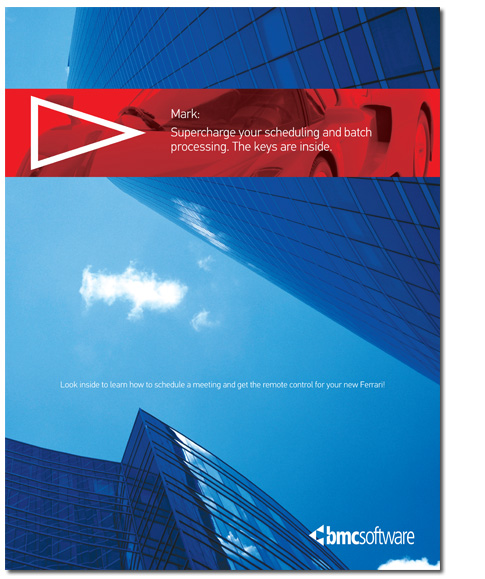 This direct mail campaign is to promote BMC software's Control-M product. It's designed to not only focus on the premium, but also uses the architecture to give a sense of structure similar to what Control-M provides.